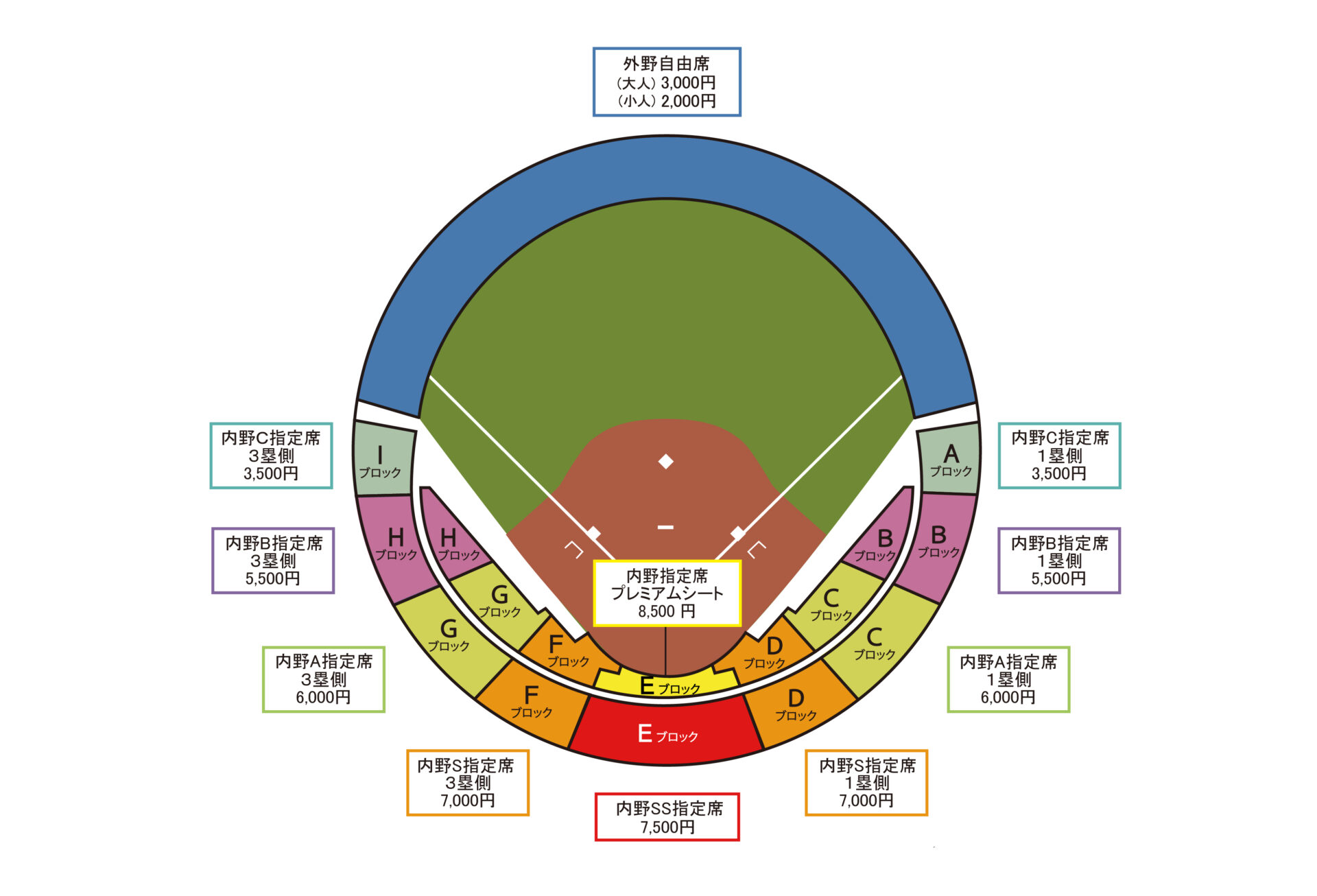 | 内野A指定席(1塁・3塁) | 6,000円 |
